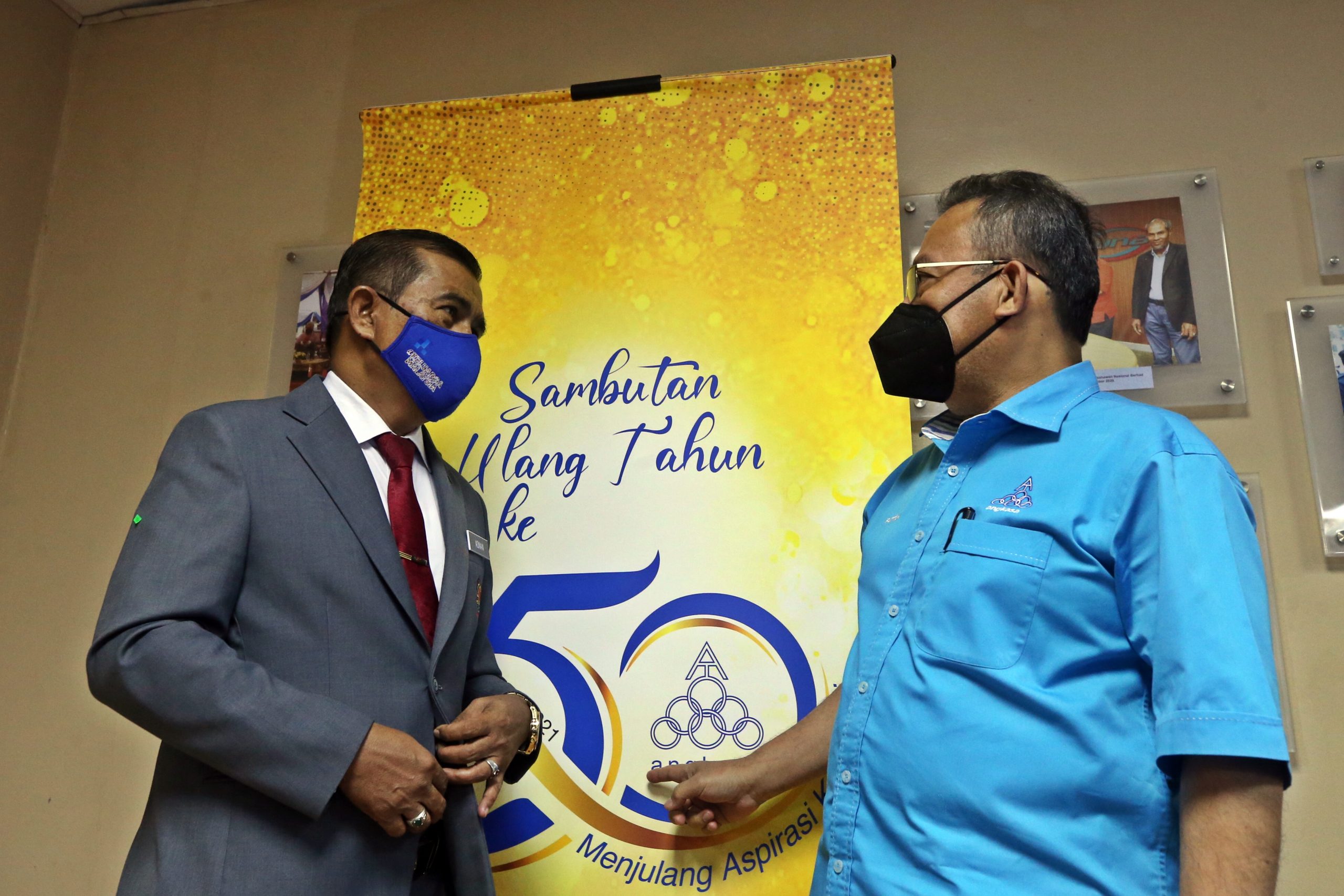 阿德南末(左)与阿都法达召开会议,商讨有关公务员生活成本上升所面对的挑战问题和解决方法。(陈敬晖摄)