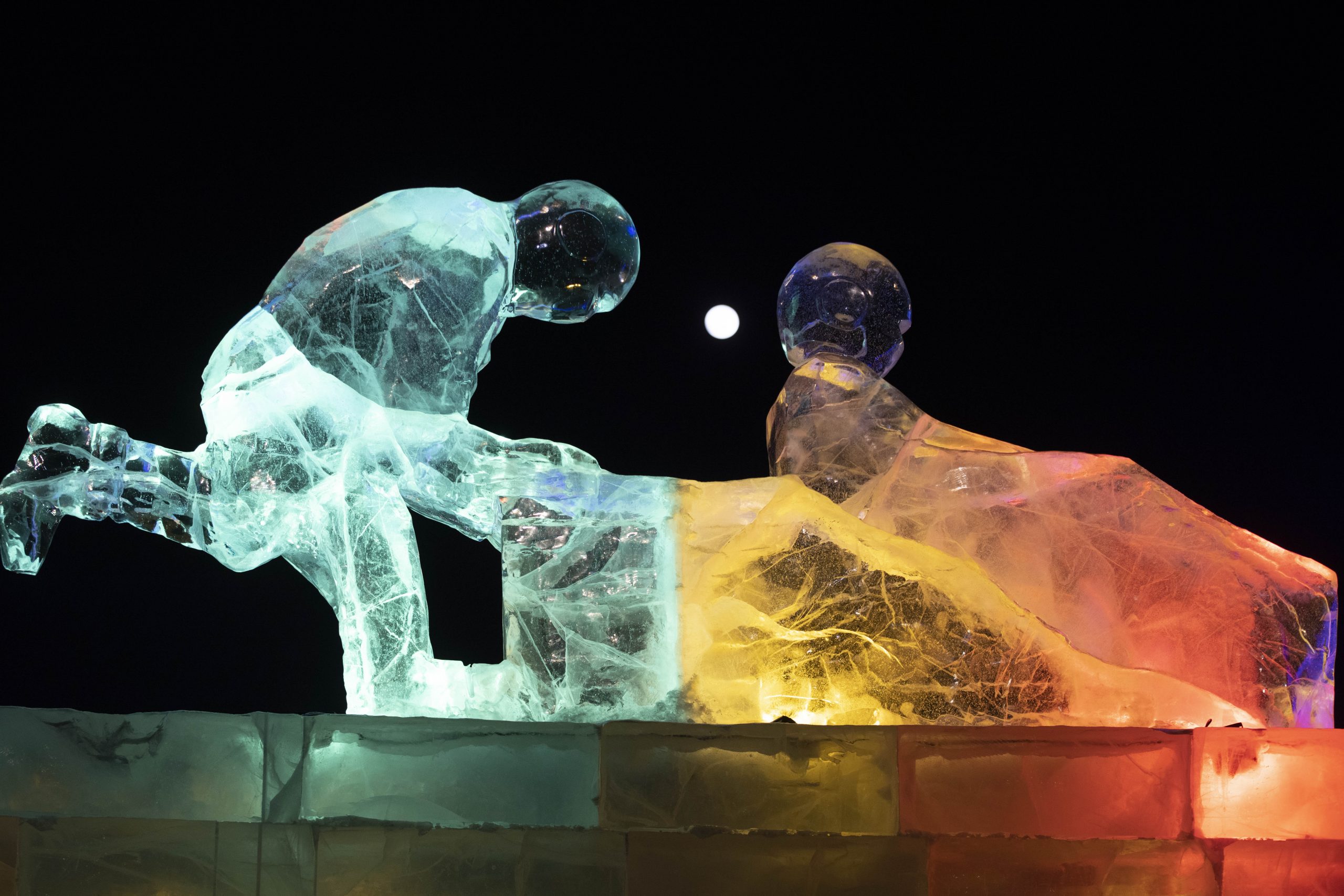 冬奥,将于2022年2月4日至2月20日在北京举行,这将是中国首次举办冬季奥运会,哈尔滨设立了15个处冰雕来迎接。(新华社图)