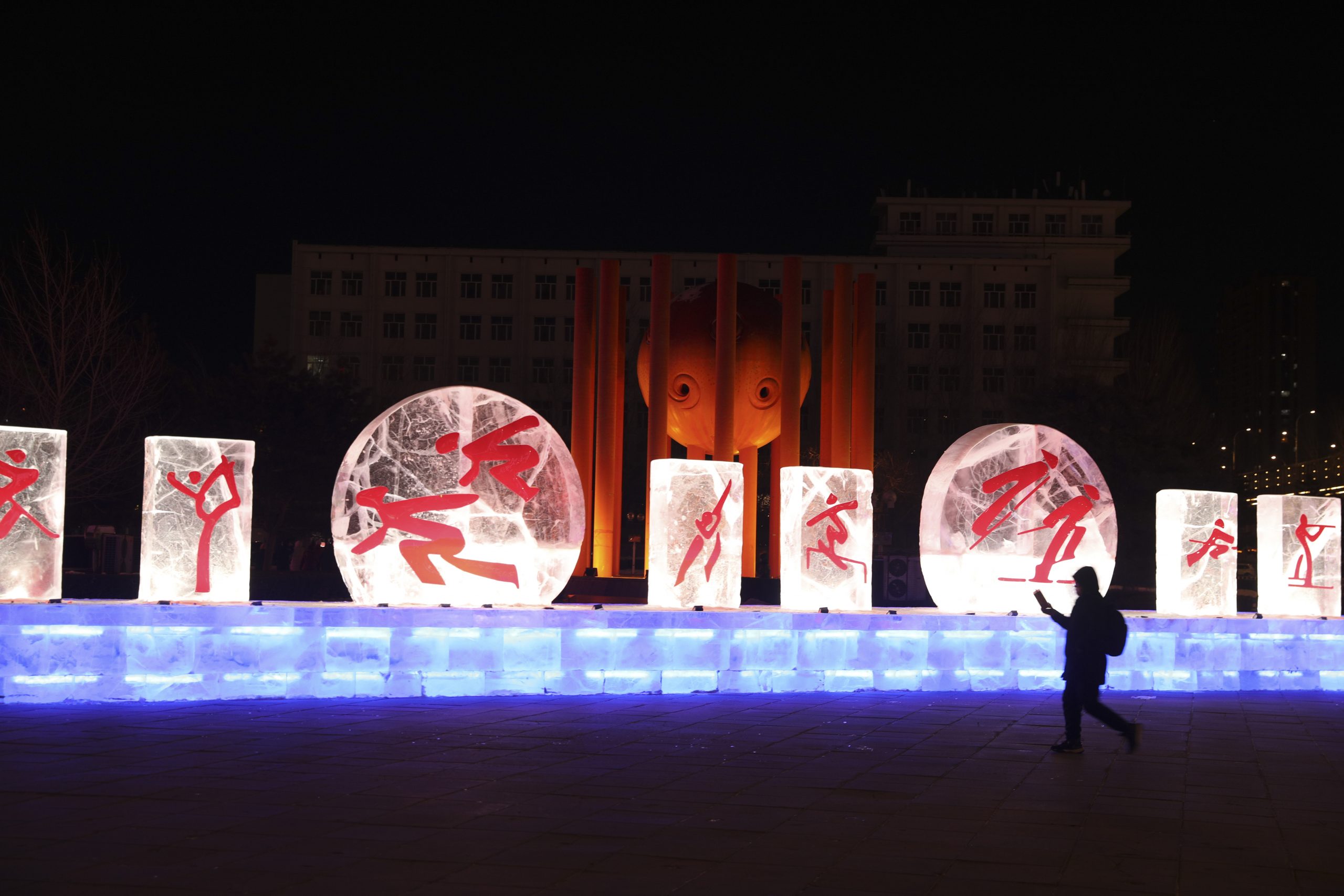 “冬奥之光、魅力冰城”为主题,设立了15处冰雪景观,冰城“尽飘”冬奥味道。(新华社图)