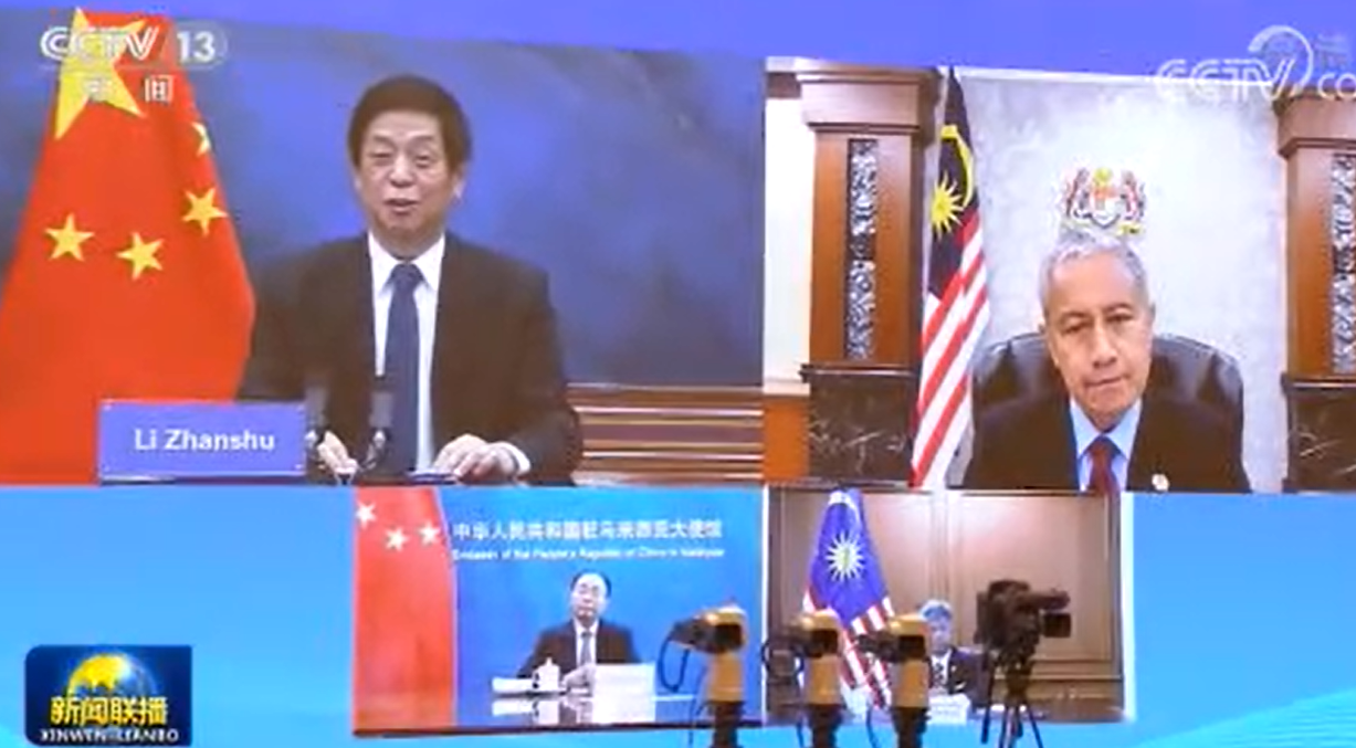 中国央视报道,栗战书昨日在北京人民大会堂以视频方式,同马来西亚国会下议院议长丹斯里阿兹哈举行会谈。