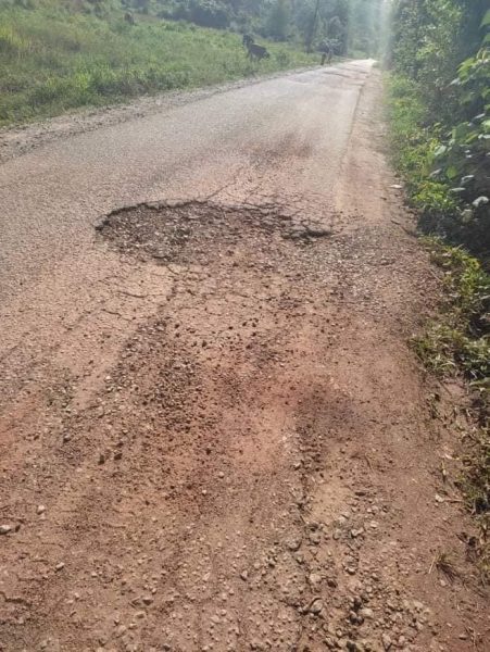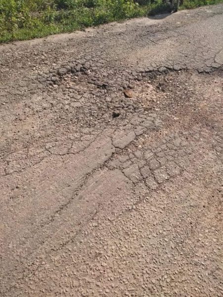 从照片上可见,该条道路出现了一个坑洞,虽然不深但也不小,估计大约阻挡了道路的一半。