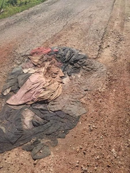 此外,道路上其他地方也出现了大大小小的坑洞,令附近居民相当不便,于是有人将一些旧衣服填平坑洞。