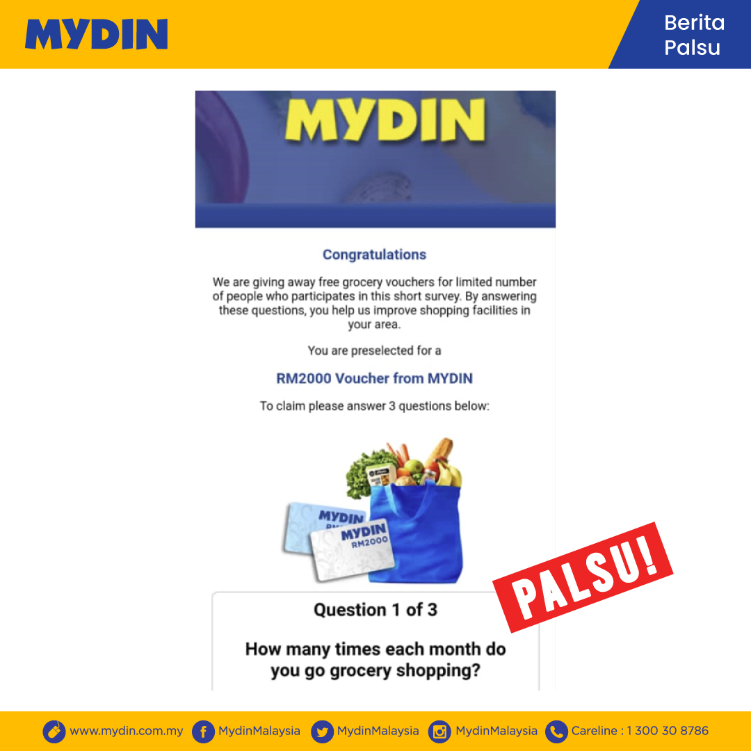 参与民调送RM2000礼券? Mydin:假网站 勿信