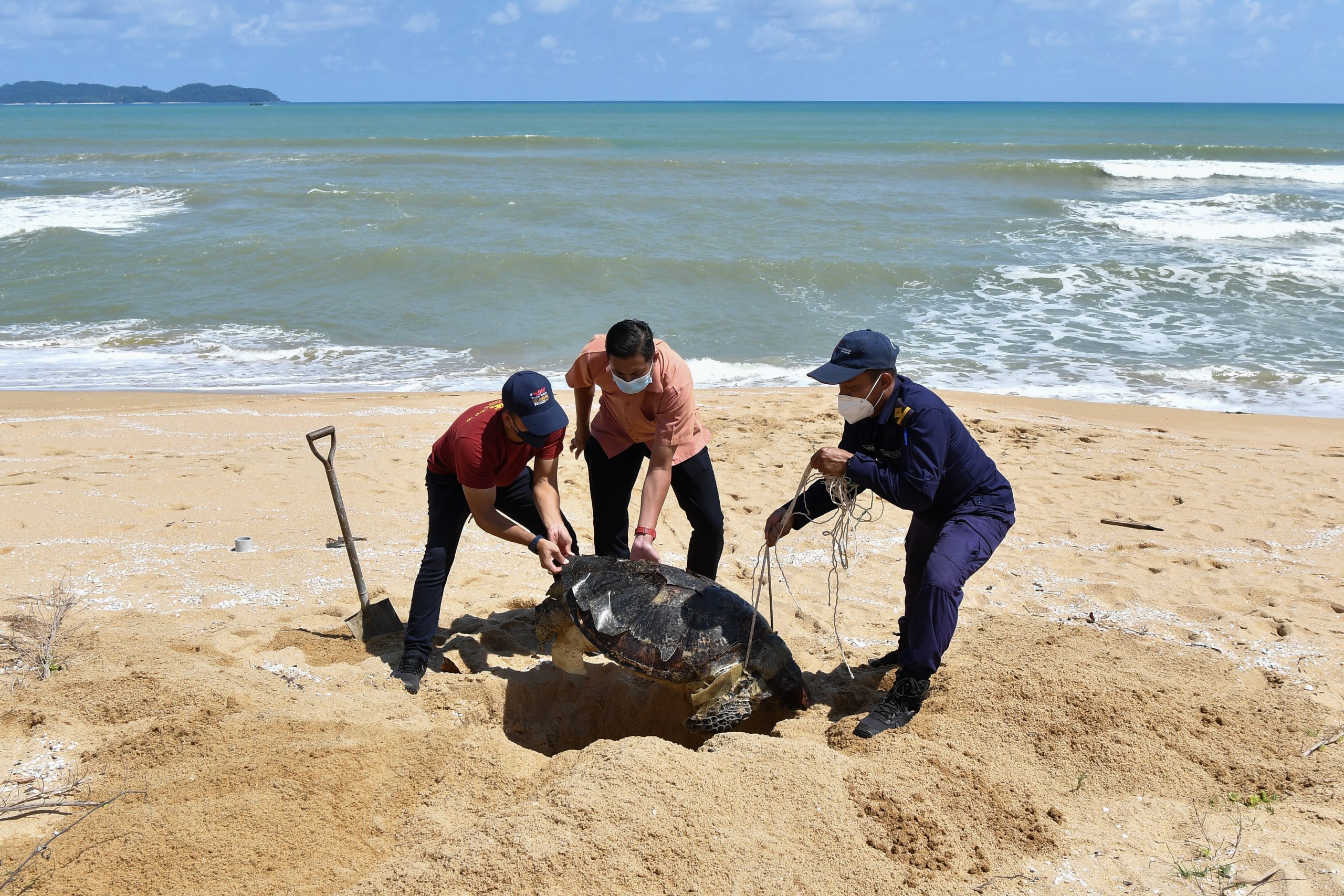 他说,当局已把海龟的尸体埋葬在格鲁鲁海滩,这也是登州这个月第11宗海龟死亡案例。