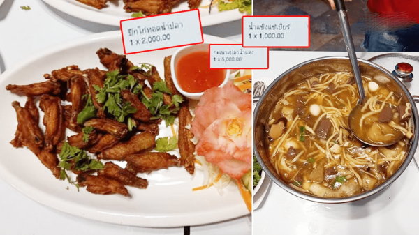 该名网友指出,自己日前相约29名朋友到那空帕农府某餐厅用餐,当时他们先后点了鱼露炸鸡翅、牛肉乾、水煮海鲜蘸酱、鱼肚及其他菜肴,以及若干酒水冰块等。一开始也没有察觉任何异常,大约4小时左右,他们喝饱吃足后,却在结帐时吓了一跳。