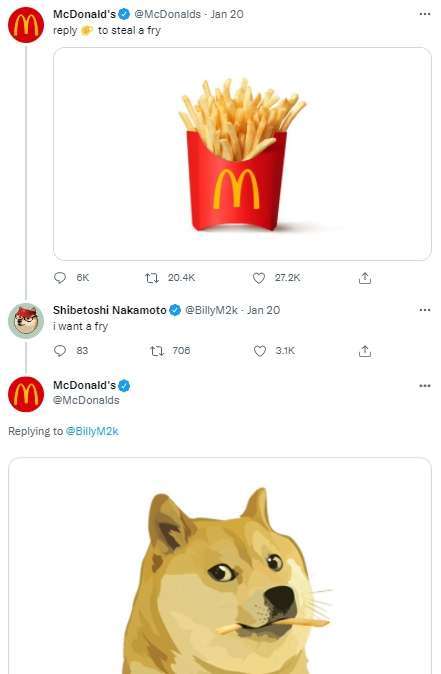麦当劳周二推文调侃加密货币投资人,询问近况如何?引发许多名人回应。
