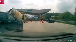 该视频是女子车子的行车记录仪所拍摄到的画面,虽然女子并没有透露事发地点,不过视频上显示,这起事件发生于1月25日下午1时35分,在一个大道收费站前。