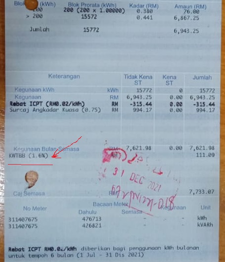 “譬如说一家中小食品企业的每月电费7000多令吉,除了被征收6%销售税之外,TNB还征收一项1.6%的再生能源开发费(KWTBB)(相等于111多令吉),从2月1日起若再加上该3.7仙的附加费,中小企业的负担简直是百上加斤。
