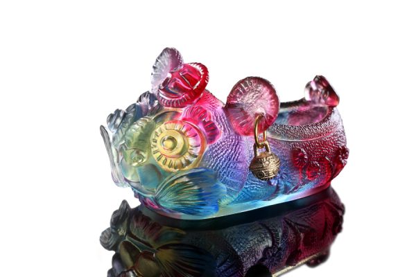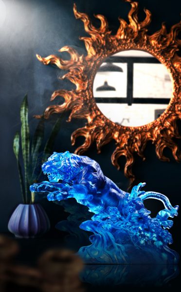 琉璃经过一千四百多度高温淬炼,如同虎在野外忍受着残酷的自然环境;琉璃淬炼完成精细打磨,熠熠生辉。《虎啸九天》展示了虎在每一次捕猎前细心观察、高度专注,最后一气呵成,胜利而归。