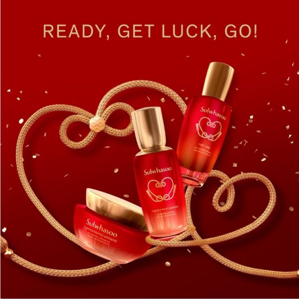 以全新红彤彤包装亮相的限量版护肤品,包括润致焕活精华肌底液First Care Activating Serum 、滋盈生人参焕颜精华露Concentrated Ginseng Renewing Serum及御时紧颜参养乳霜Concentrated Ginseng Renewing Cream EX,心型结绳的设计带来新一年的好运气,让人元气满满迎向新一年。