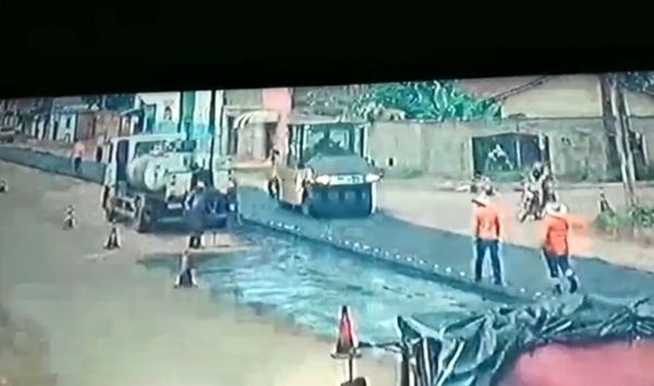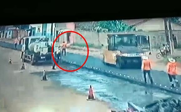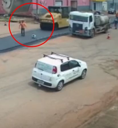 这起骇人事故于上周四(27日)下午,发生在巴西朗多尼亚州首府韦柳港一处正在进行铺设的道路上。