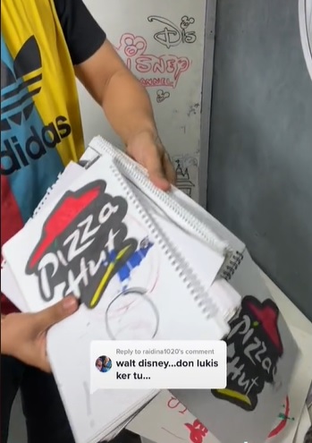 从华特迪士尼(Walt Disney)代表性标志到快餐店标志如必胜客(Pizza Hut),顿再亚都会先把标志的颜色和形状记下,过后再画出来。
