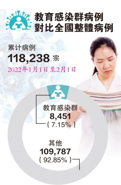 若以病例数量来看,莫哈末拉兹说,在1月1日至2月1日之间,全国有11万8238宗冠病病例,当中8451宗涉及教育感染群,占7.15%,其余92.85%来自其他感染群或是零星病例。