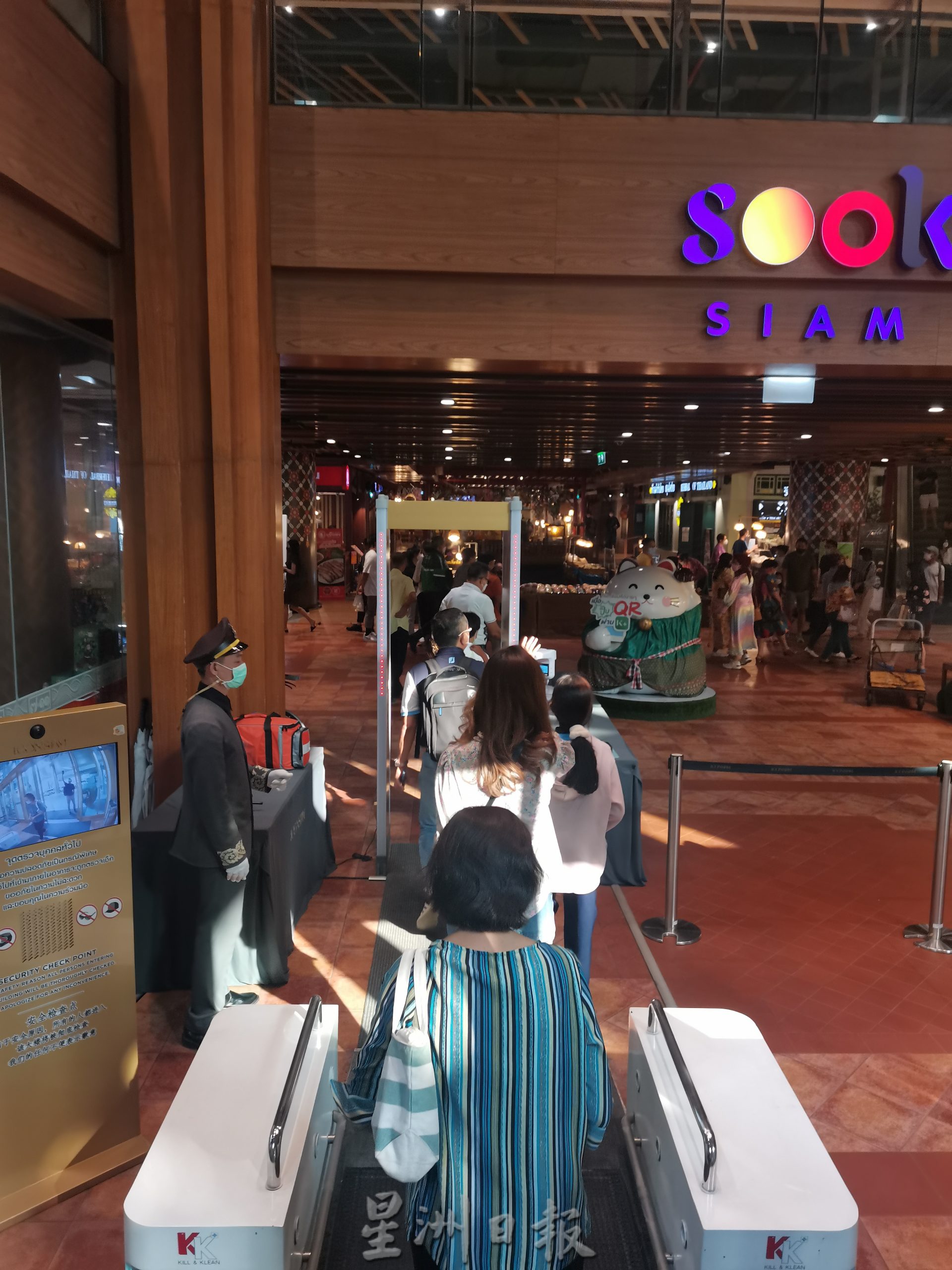 根据记者观察,泰国曼谷部分观光地区已恢复人潮,当地店家也没有要求顾客以MorChana扫描登记,所有人必须时刻戴上口罩。