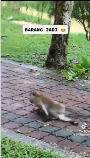 社交媒体平台日前流传一段视频,一名男子在公园里先是拍了手中握有红色的包装纸,接著把镜头转向前方的猴子,只见那只猴子走路时全身瘫软无力,跌跌撞撞地前进,相信是吃了奇怪的食物所致。