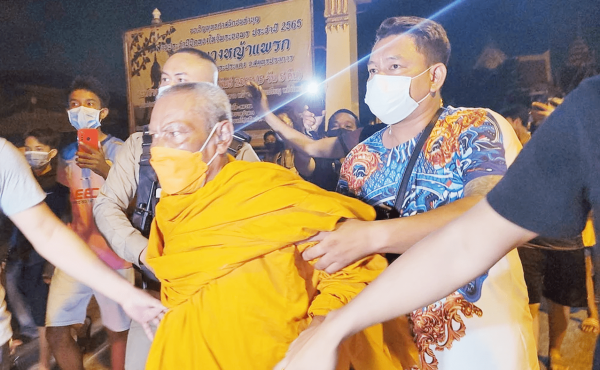 双方对骂了好长一段时间,需要警方出手介入,双方才平静下来,佛寺方丈也答应让乍拉攀和媒体记者入内搜索,结果在佛舍发现女性内衣和束发布带,巴讪蓬辩称束发布带是他的个人物品,专门在头痛时绑头舒缓痛楚,但民众根本不相信,并把重点放在女性内衣上。