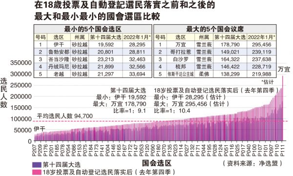 | U18及自动选民登记实施后 全国最大和最小国会选区 | ||||
