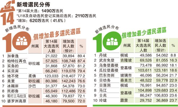 | 议席 | 州属 | 第14届大选选民人数 | 2022年1月选民人数(预计) | |