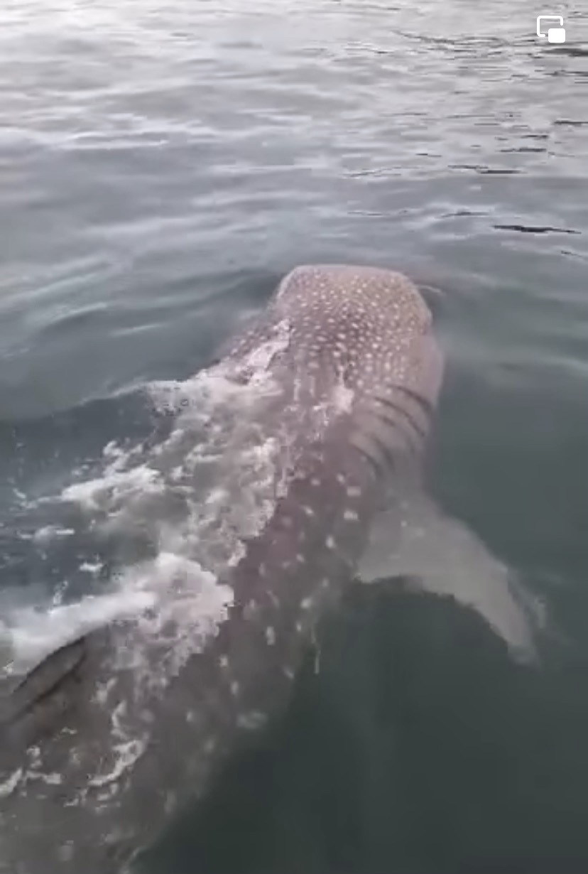 浮上水面绕船前转一圈 罕见鲸鲨现沙海域