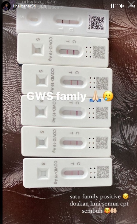 他之前在Instagram的即时动态分享,6名家人自行检测皆呈两条线阳性的确诊结果。