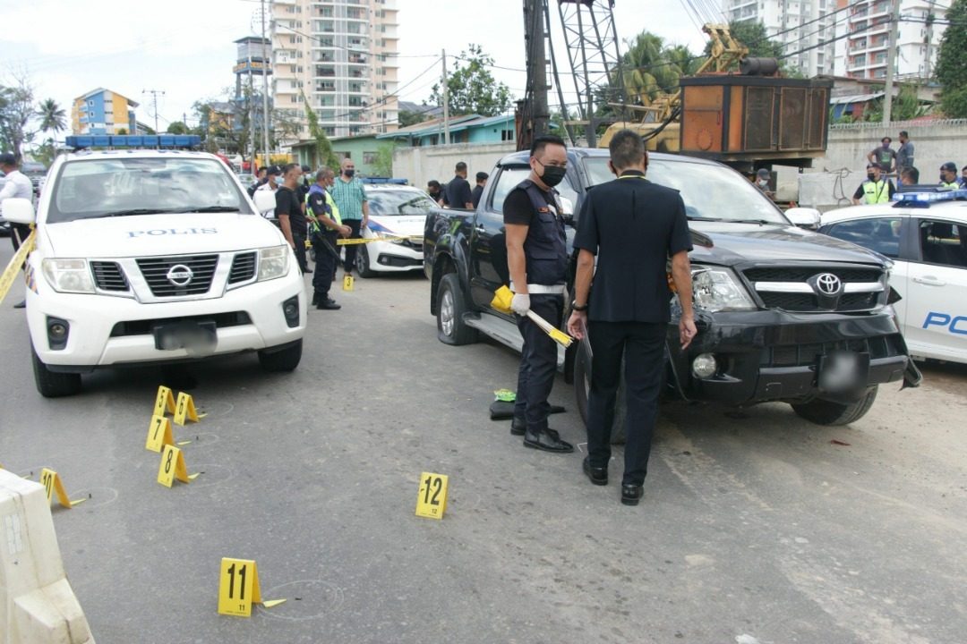 警方鉴证组警员约在早上11时45分到场,展开搜证工作,包括鉴定弹壳的位置和搜集证据。