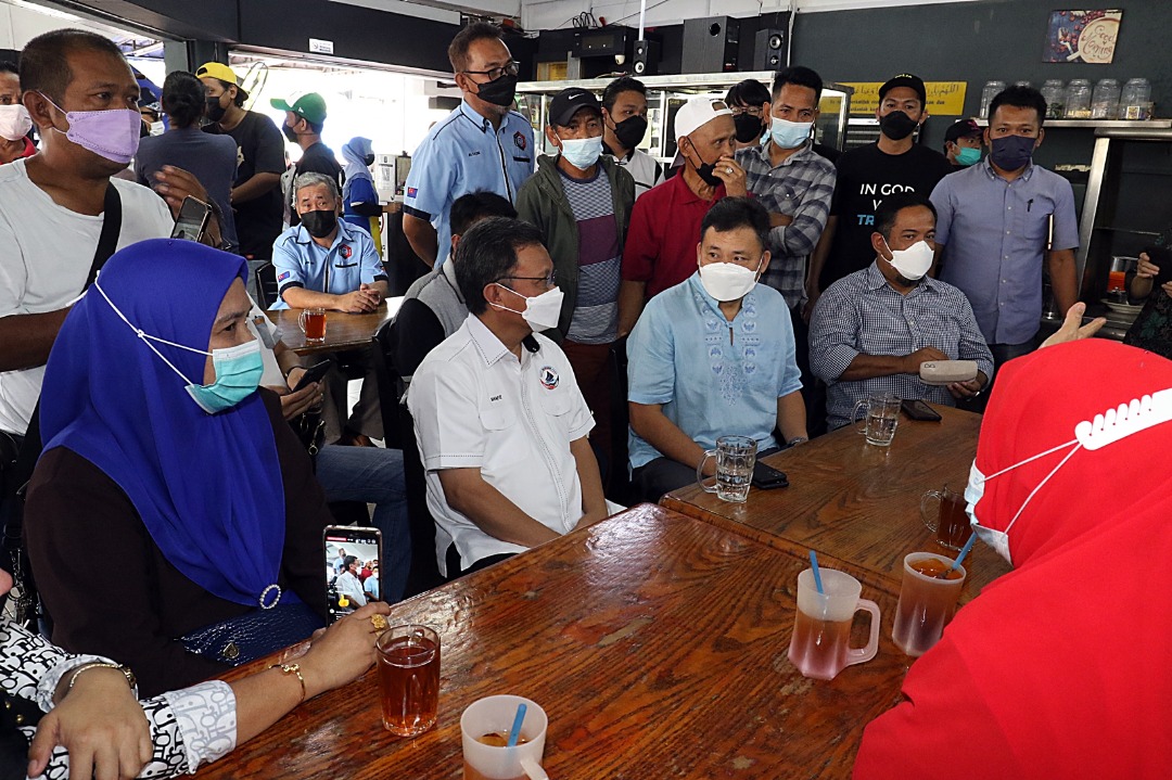 沙菲益今早前往位于百万镇选区内、由柔州政府在数年前为自沙巴迁至当地定居的人民开设的沙巴市集走访。