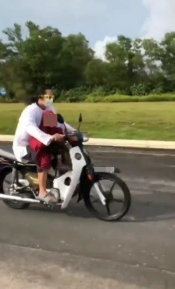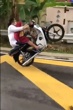 (八打灵再也17日讯)一名父亲为耍酷炫技,竟载着女儿飙车大耍,将摩托车头抬起,作出玩命的