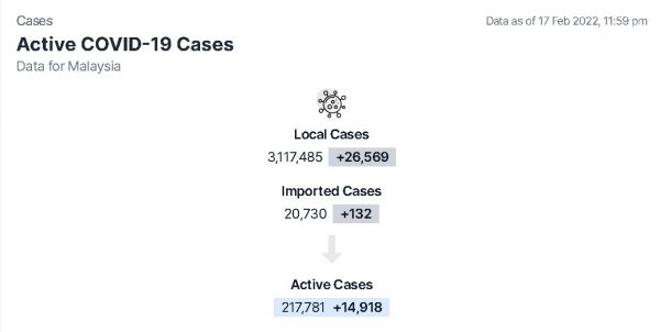 另外,COVIDNOW网站的数据显示,昨日新增1万4918宗活跃病例,因此全国累计有21万7781宗活跃病例。