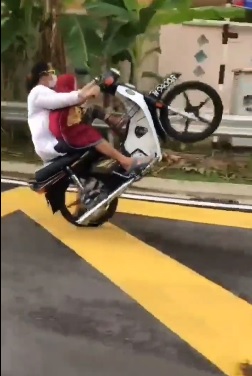 在这之前,大马监督罪案组织(MyWatch)也在推特上传这名父亲玩命骑摩托车的视频,提醒为人父母者,不要为了自己无益的爱好而拿孩子的性命当赌注。