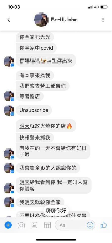 另外,花店最后指出,他们因为兼职人员的帖文而收到恐吓、威胁的电话与讯息,扬言要烧掉店面、到店里泼红漆,甚至有人威胁要让店员毁容,让店员担惊受怕。
