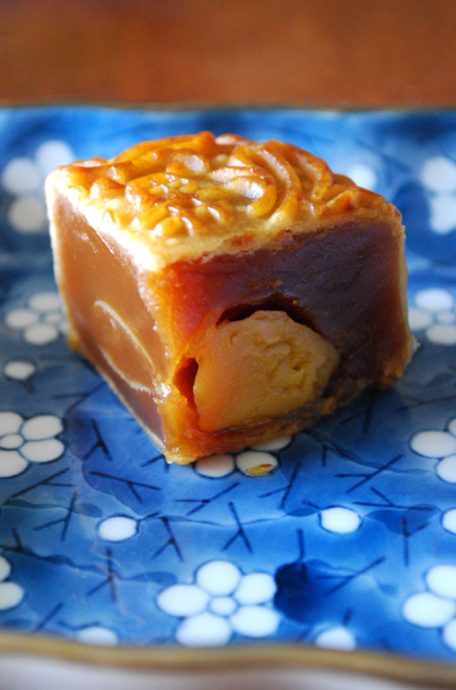宝鸭代表“咸鸭蛋”,莲即“莲蓉”,咸蛋黄穿越莲蓉,当然就是单黄莲蓉啊!也忘了是谁告诉我的,记忆中比较“文雅”的老一代都把这款月饼叫成这样,当时心里总觉得为何要那么