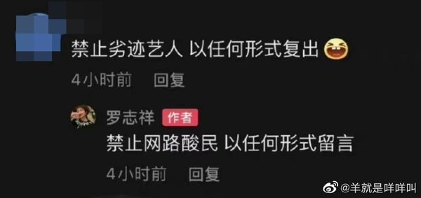 日前罗志祥公开新歌《修罗》预告片,许多粉丝涌入留言支持,仍有酸民炮轰说:“禁止劣迹艺人以任何形式复出。”罗志祥则是亲自回覆:“禁止网路酸民以任何形式留言。”一句话让酸民闭嘴。也有不少粉丝替他抱不平“我支持小猪,你抵制你的,我支持我的”、“他是有违道德,可是不能否认他的作品都很优秀”、“为你的坚强支持”。