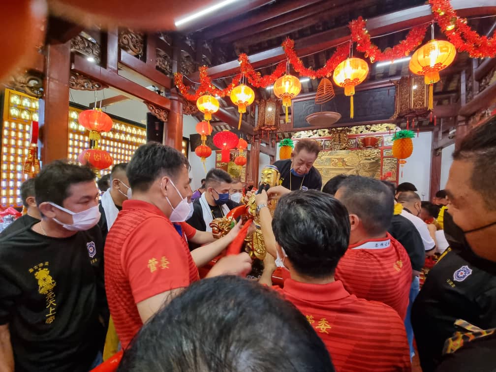 (新山19日讯)2022壬寅年柔佛古庙众神出游正式掀开序幕,今日的洗街与请神上轿仪式在遵守严格防疫标准作业程序(SOP),以及有限人数下顺利举行。