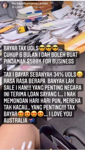 努沙加在澳洲经商须缴付高达34%的税务也心甘情愿,她感激澳洲接纳她。(截图自努沙加Instagram)