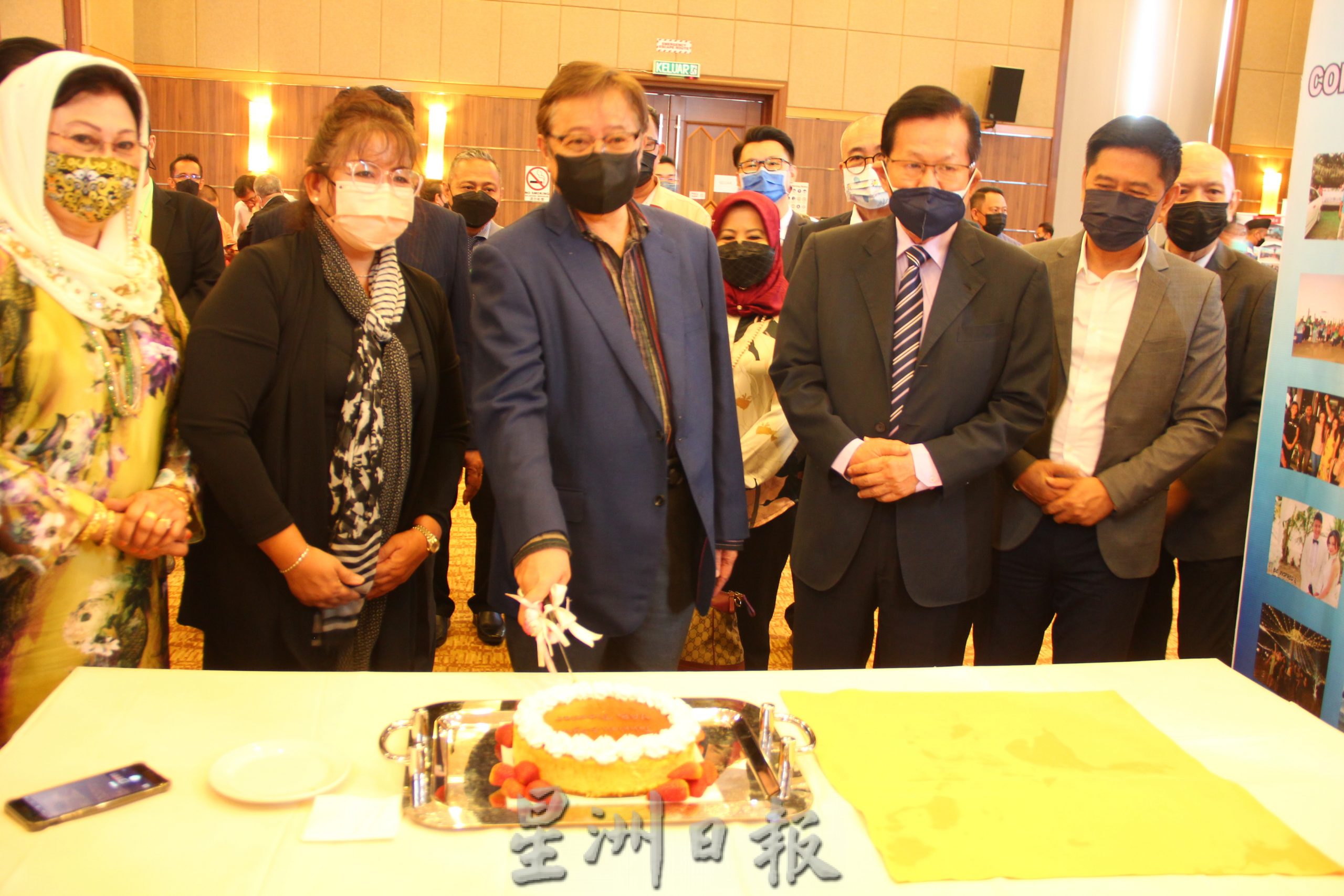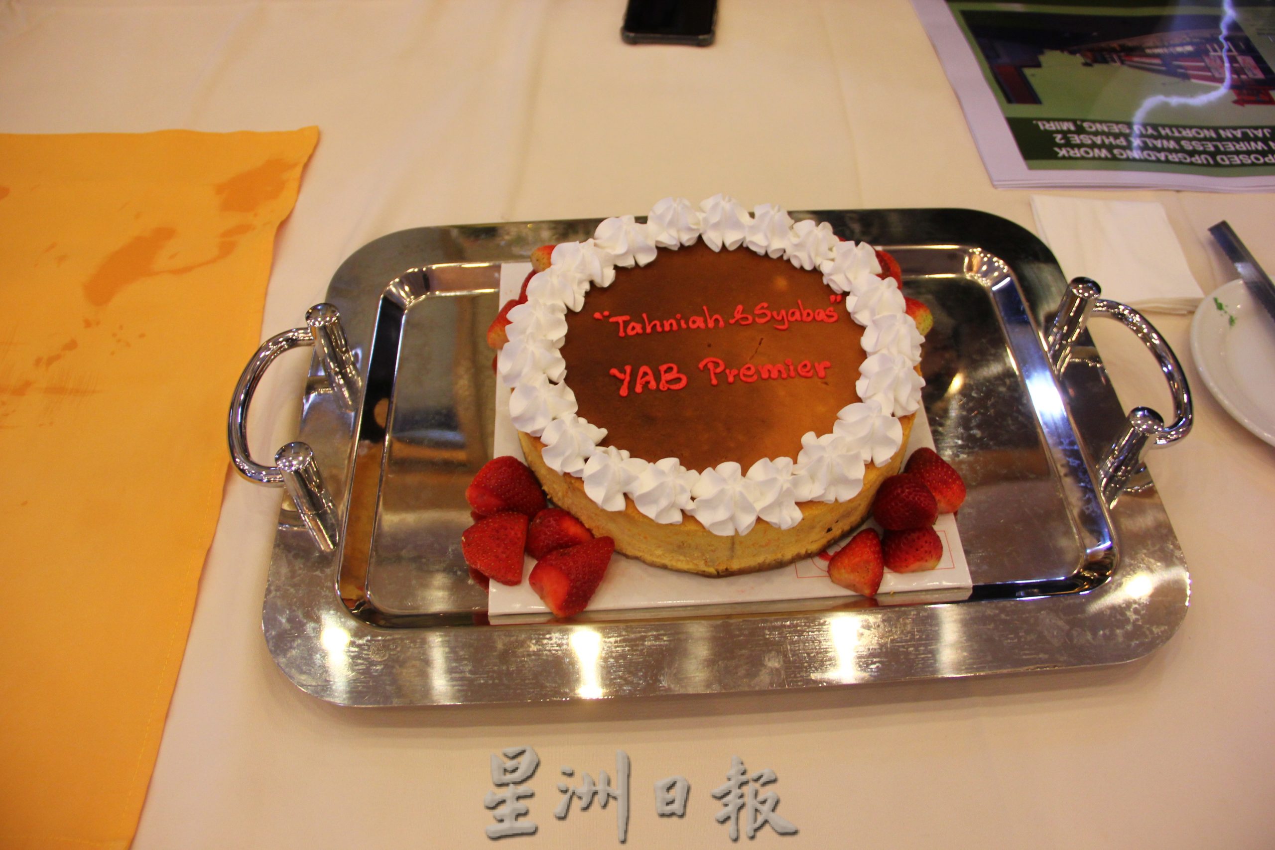 在今早的活动上,还有一个参展单位特制一粒刻上“恭喜尊贵的总理”(Tahniah & Syabas YAB Premier)字眼的蛋糕,邀请阿邦佐哈里主持切蛋糕仪式。