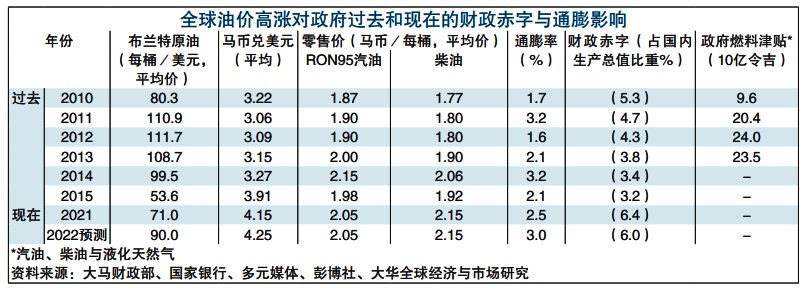 国际油价涨势不坠,大华银行认为,高涨油价虽为政府带来额外收入,但同时也将增加政府燃油津贴账单,对政府财政是把双刃剑,可能迫使政府重新关注燃油津贴合理化计划,以管理迅速膨胀的账单,同时重建财政空间来应对未来挑战。