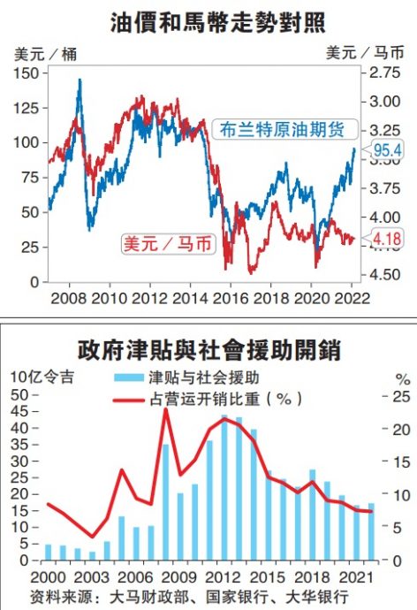 数据显示,当布油价在2011至2014年徘徊在每桶57至126美元水平时,大马每年的燃油津贴开销均超过200亿令吉。