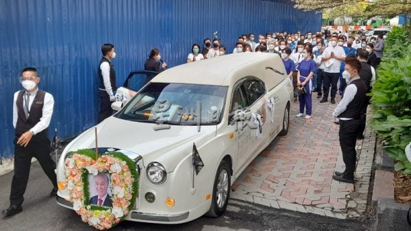 出殡仪式于今早8时许开始,进行封棺、佛光山法师诵经及奠祭等仪式,之后在上午11时由丧府扶柩发引还山至巴生仙境山庄。