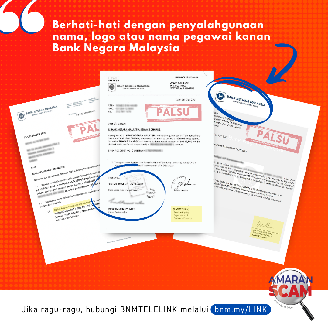 若民众曾接获类似信函,可拨打03-2610 1559/1599向全国商业罪案调查部的诈骗回应中心(CCID Scam Response Centre)投报,或透过bnm.gov.my/LINK联系BNMTELELINK。