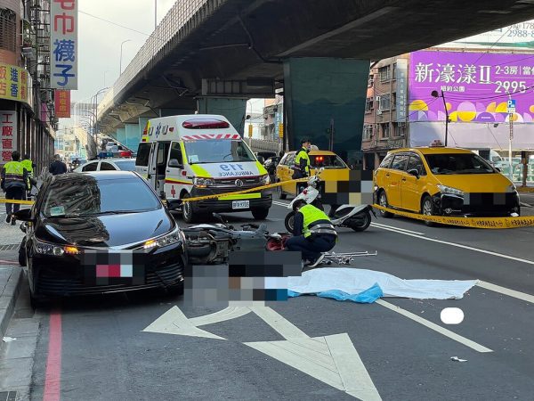 (台北27日讯)停在路边的德士司机突然开门,导致摩托车骑士闪避不及倒地,惨遭后方砂石罗里碾毙!