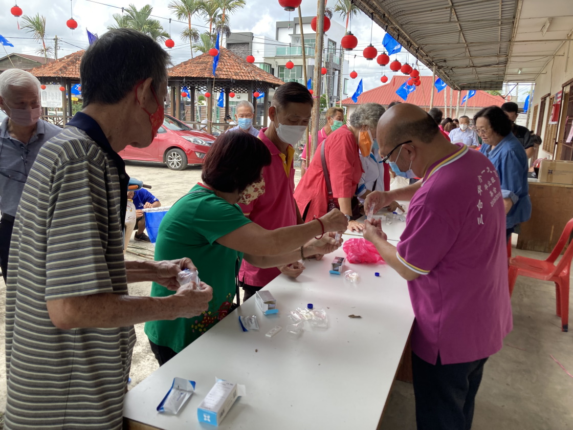 在蔡细历与三合港非政府组织交流会开始前,主办当局在场外提供检测盒让出席者进行快检。(叶静薇摄)