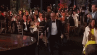 麦可基顿上厕所导致迟上台领奖还翻滚上台,非常吸晴。(影片截图)