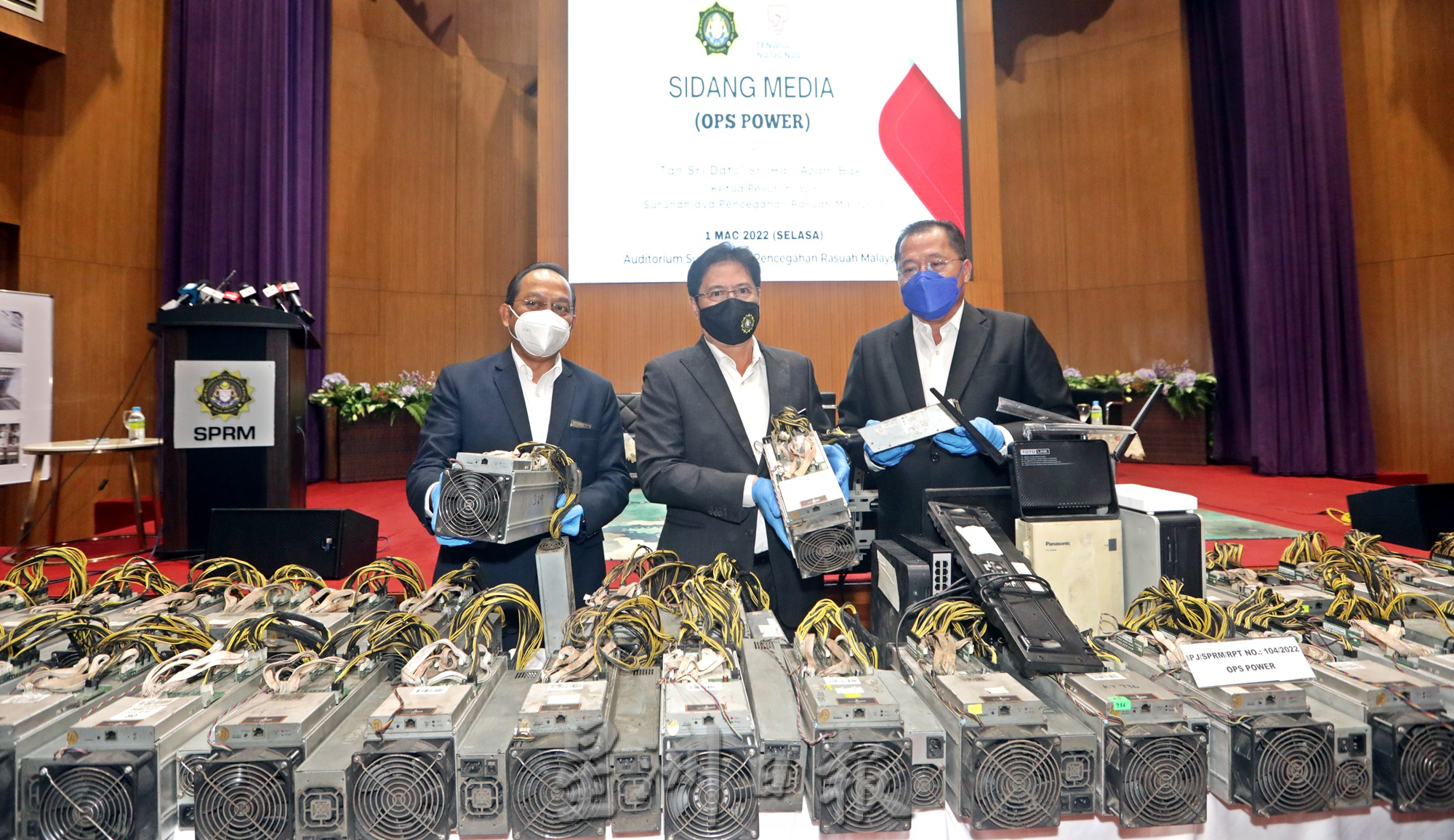 (布城1日讯)反贪会侦破国能内部职员勾结比特币挖矿集团,收贿3000至30万令吉不等,来掩盖比特币挖矿的非法偷电活动。