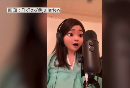 转换滤镜,朱莉娅秒变迪士尼公主,唱起自创歌曲。《沉清传音乐剧》的创作灵感源自韩国同名古典名著,多首原创歌曲上载短视频平台TikTok后爆红。