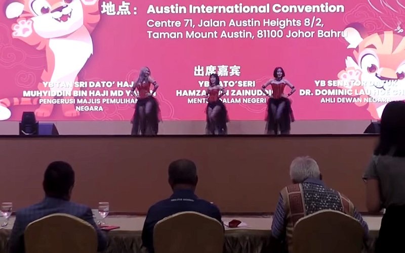 根据媒体报道,有关因性感舞蹈而引起争议的大型晚宴是由数名华裔商界人士安排,而国家复苏理事会主席丹斯里慕尤丁、内政部长拿督斯里韩沙再努丁以及民政党主席拿督刘华才为出席嘉宾。