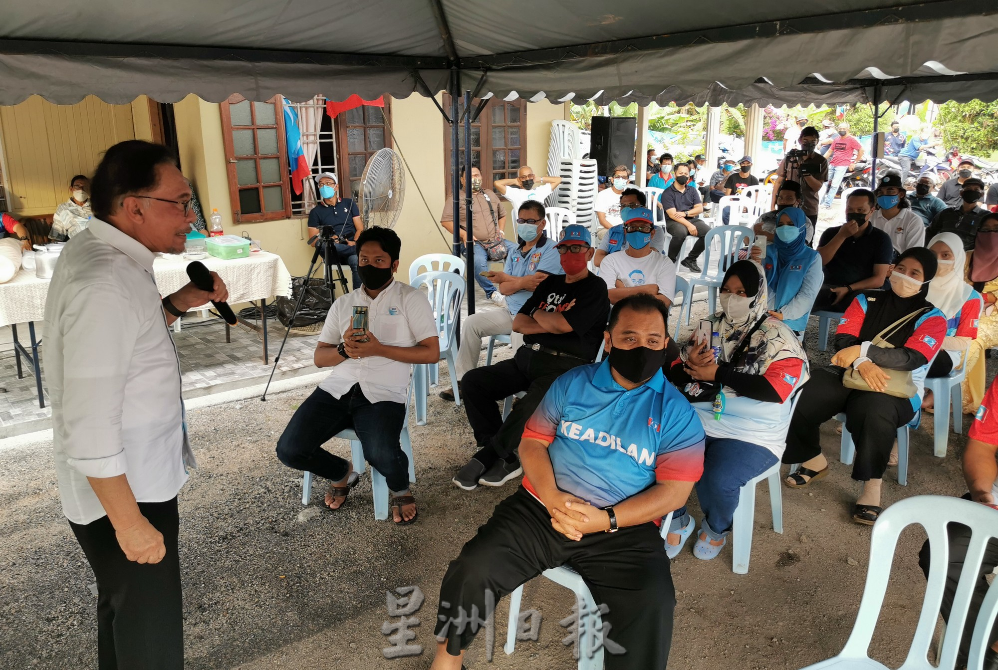 安华今午到公正党圣模那州席竞选行动室,在发表演说时便先脱下口罩,并强调自己遵守卫生部在国会定下的防疫规定。
