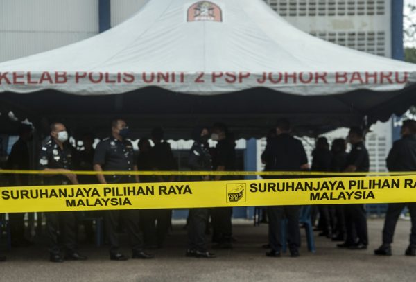 (新山8日讯)柔佛军警及他们的配偶今日在严格遵守防疫标准作业程序下,前往选委会分配好的投票站提早投票,投票率达87%,共有1万8625名军警与配偶履行公民责任投票。