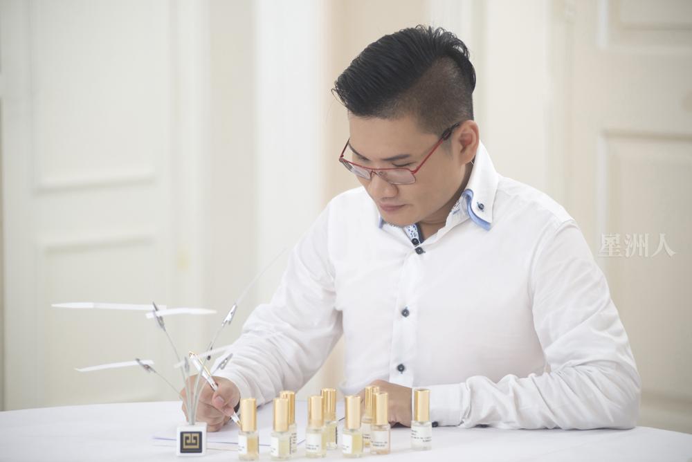 谈到他的专业,他是滔滔不绝。从香水的种类,香水的选择,到香水的层次,他都一一分享。好比香水的层次,在我们这些外行人闻起来,就只有一种香味而已,但其实并不然。
