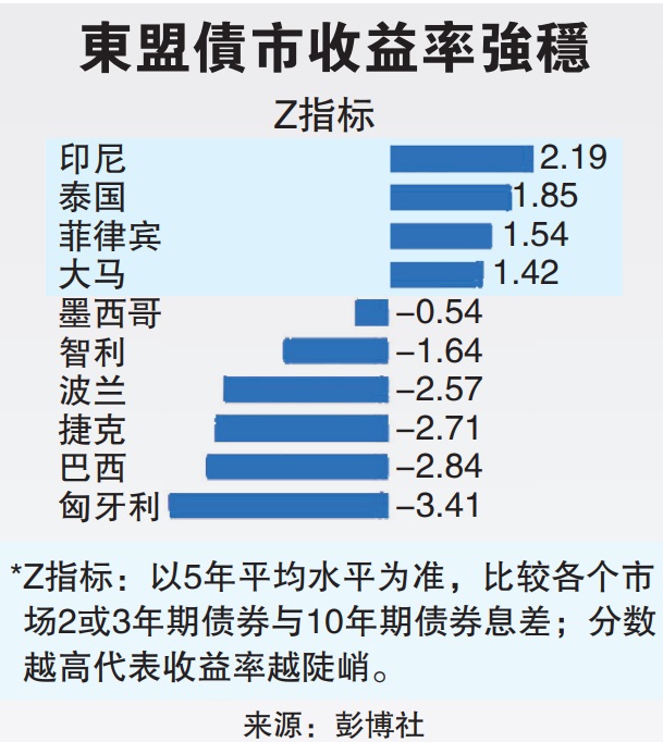 《彭博社》针对东南亚10个市场进行的一项分析显示,大马、印尼、泰国及菲律宾的指标利率仍处于历史新低水平,得以使收益率曲线维持在比5年中值高出1至2个标准差的水平。