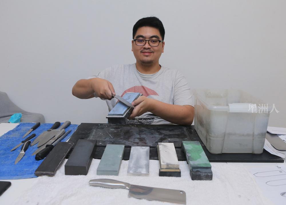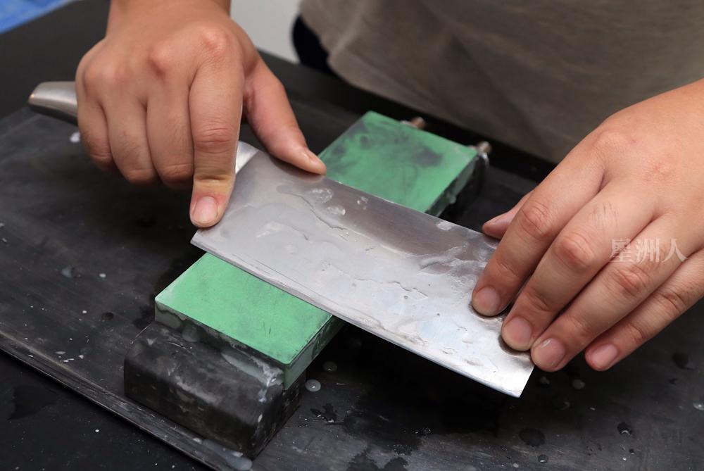 来自槟城的甘浚宏本身是一名软件工程师,2020年时他在社交平台上设立“K Sharpening Service”,自此多了一个身分——磨刀师傅。白天工作,放工和空闲时间则拿出刀具和磨刀石,替人磨刀修刀。相比机器磨刀法,采用磨刀石磨刀的方式虽然费力,效果却比机器更细腻,不易损伤刀身。